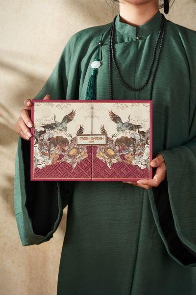 Mang hình ảnh chim hạc và hoa cung đình - biểu tượng cho sự trường thọ và an yên, Cung Đình là hộp quà trung thu mang ý nghĩa ấm áp, tròn đầy.