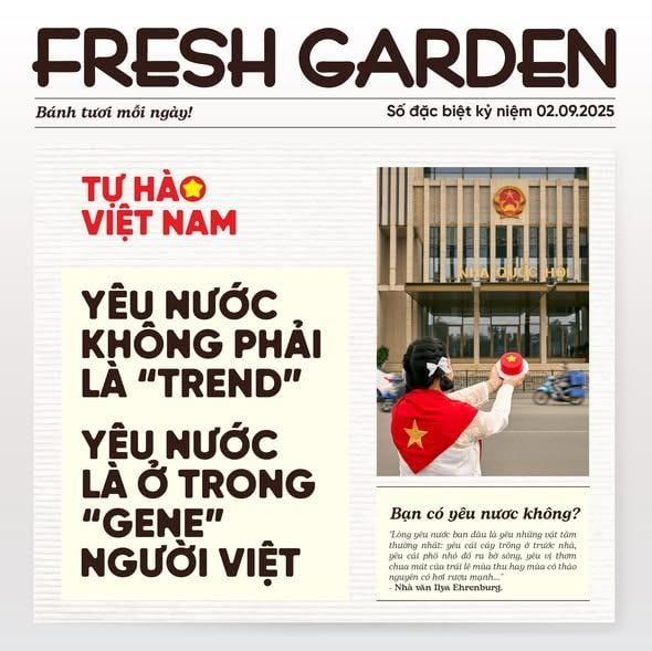 Hòa chung không khí rộn ràng trước thềm Đại lễ, Fresh Garden chính thức ra mắt bộ sản phẩm đặc biệt “Tự hào Việt Nam” – nơi tình yêu nước được những người thợ làm bánh thể hiện bằng bơ sữa ngọt ngào, tinh tế và đầy cảm xúc.